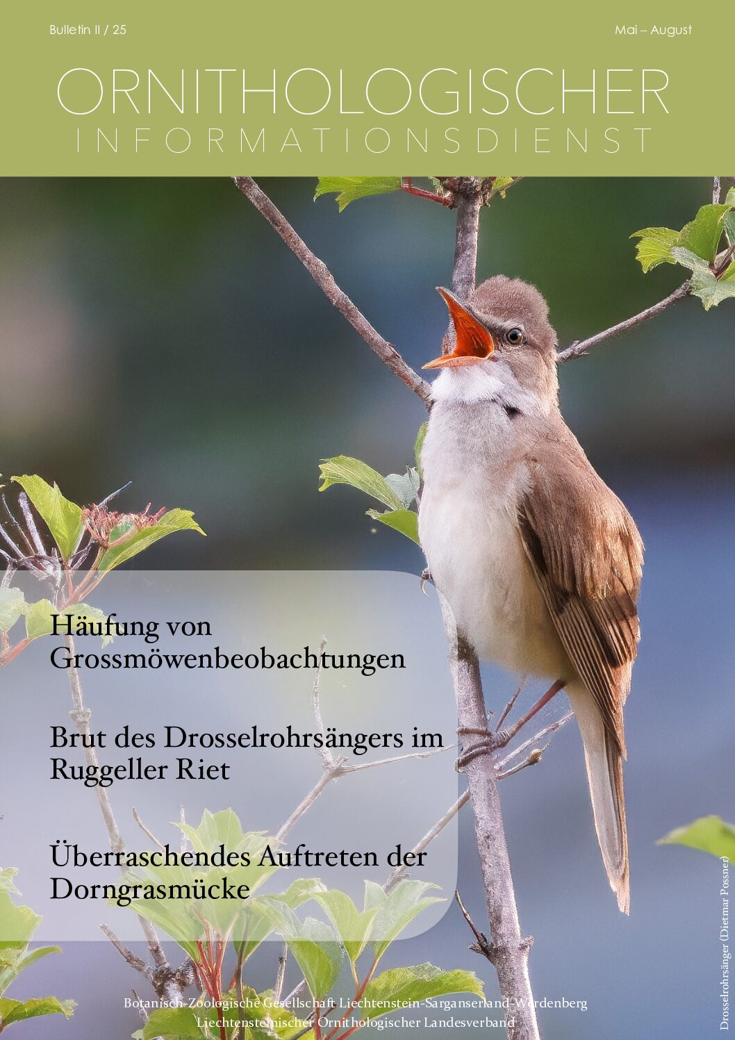Ornithologischer Informationsdienst Hier finden Sie die bisher erschienenen Bulletins von Georg Willi (Liechtensteinischer Ornithologischer Landesverband): 2025 Bulletin I – 2025 Bulletin II – 2025 2024 Bulletin I – 2024 Bulletin II – 2024 Bulletin III – 2024 2023 Bulletin I – 2023 Bulletin II – 2023 Bulletin III – 2023 2022 Bulletin I – 2022 Bulletin II – 2022 Bulletin III – 2022 2021 Bulletin I – 2021 Bulletin II – 2021 Bulletin III – 2021 2020 Bulletin I – 2020 Bulletin II – 2020 Bulletin III – 2020 2019 Bulletin I – 2019 Bulletin II – 2019 Bulletin III – 2019 2018 Bulletin I – 2018 Bulletin II – 2018 Bulletin III – 2018 2017 Bulletin I – 2017 Bulletin II – 2017 Bulletin III – 2017 2016 Bulletin II – 2016 Bulletin III – 2017
